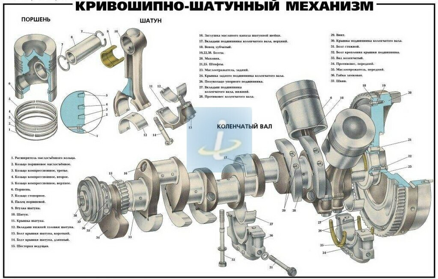 Коленчатый вал – стальной, изготовлен методом горячей штамповки.