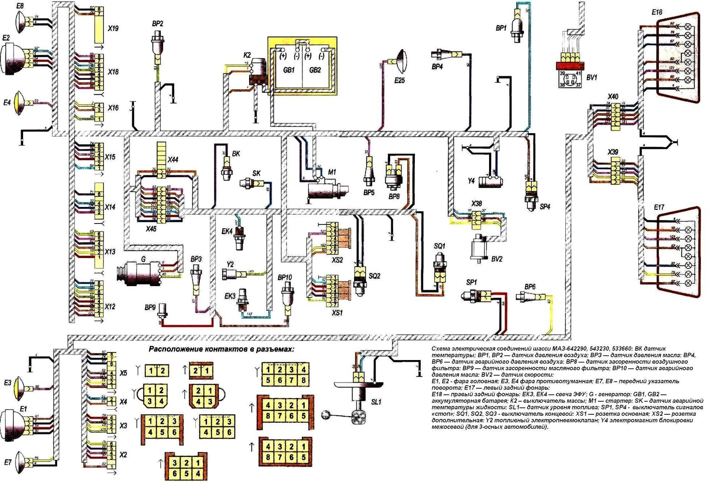 Схема электрических соединений находится «Схема электрожгутов МАЗ»