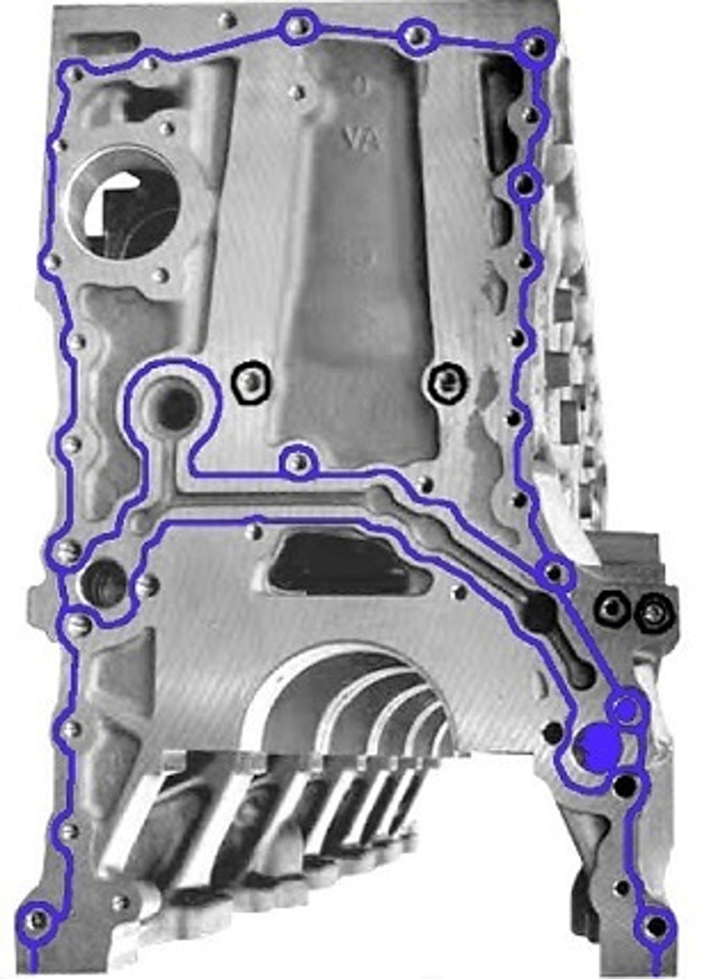 - Нанести на торец блока цилиндров под установку листа торцевого герметик «Локтайт 518», как показано на Рис. 1.