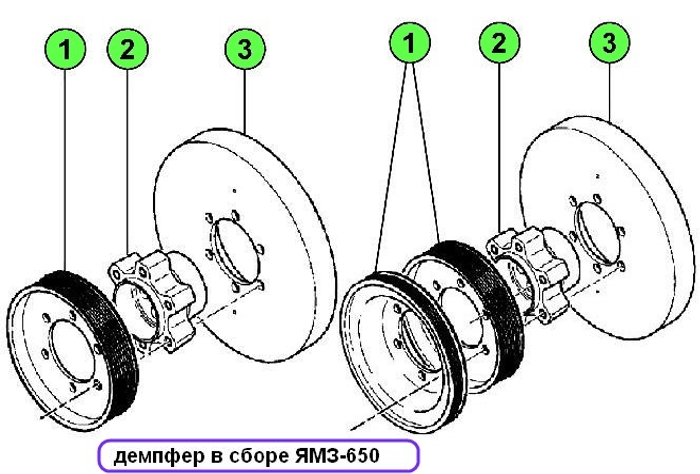 - 3. Затяжка болтов крепления демпфера производится за два приема:
